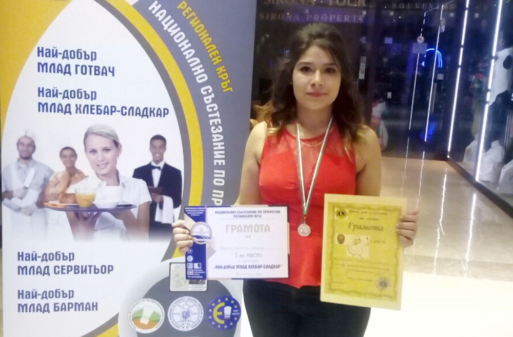 Дарина Иванова от 12 г клас на хасковската Професионална гимназия по туризъм „Александър Паскалев“ спечели първо място в категория „Най-добър млад хлебар-сладкар“ в регионално състезание по професии във Велинград, похвалиха се от гимназията.