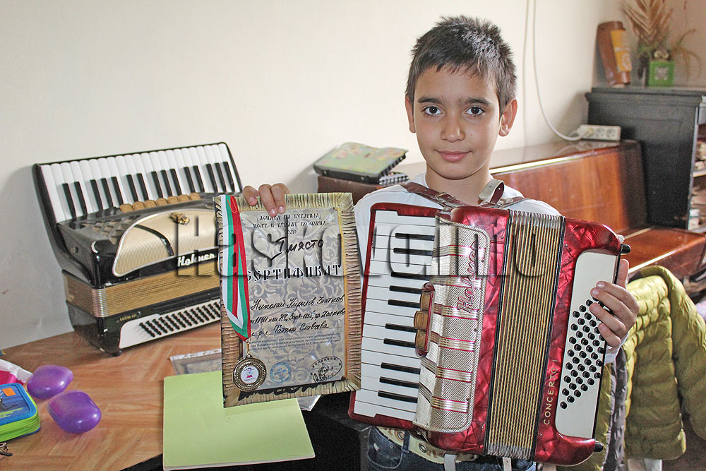 Талантливият акордеонист е в трети клас на СУ „Св. Паисий Хилендарски“. След дни му предстоят нови конкурси в Димитровград и Котел.