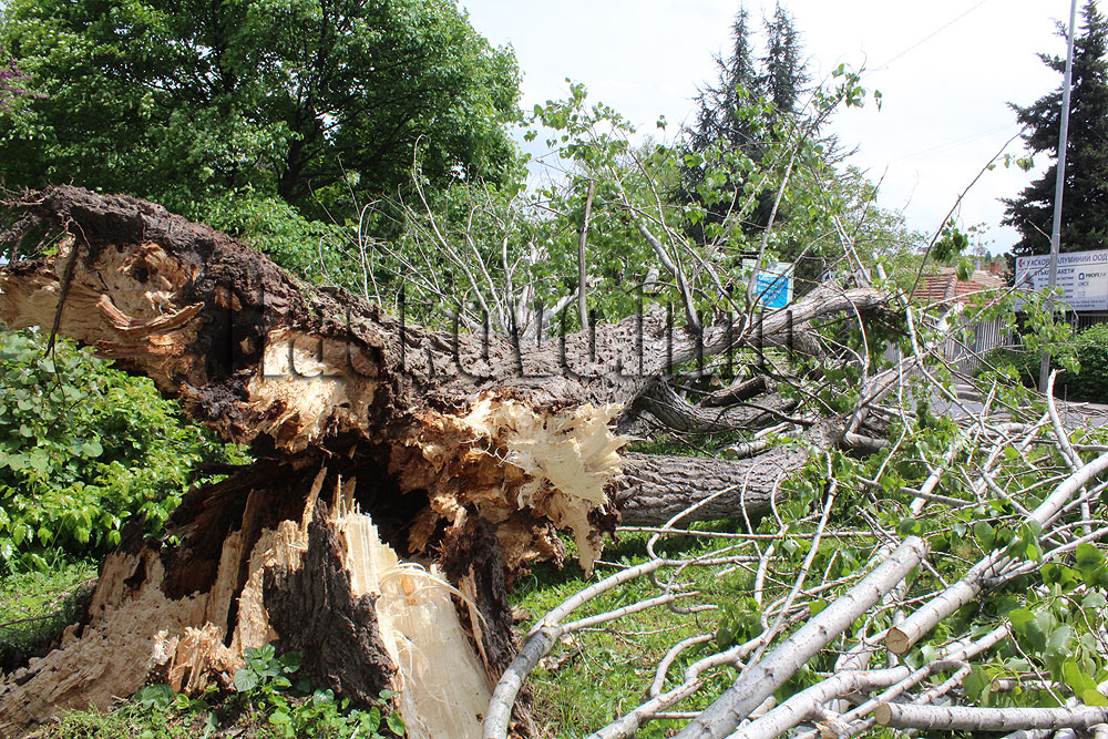 Стара топола падна преди обяд на булевард „Илинден“ в Хасково.