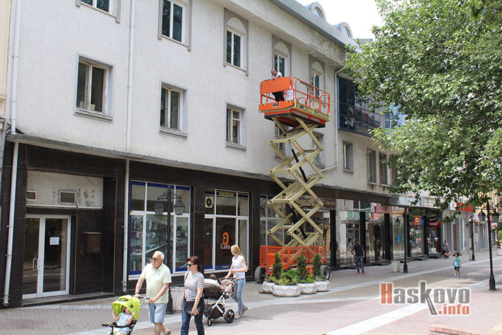 Ремонт на опасна мазилка на сграда се извършва в центъра на Хасково.