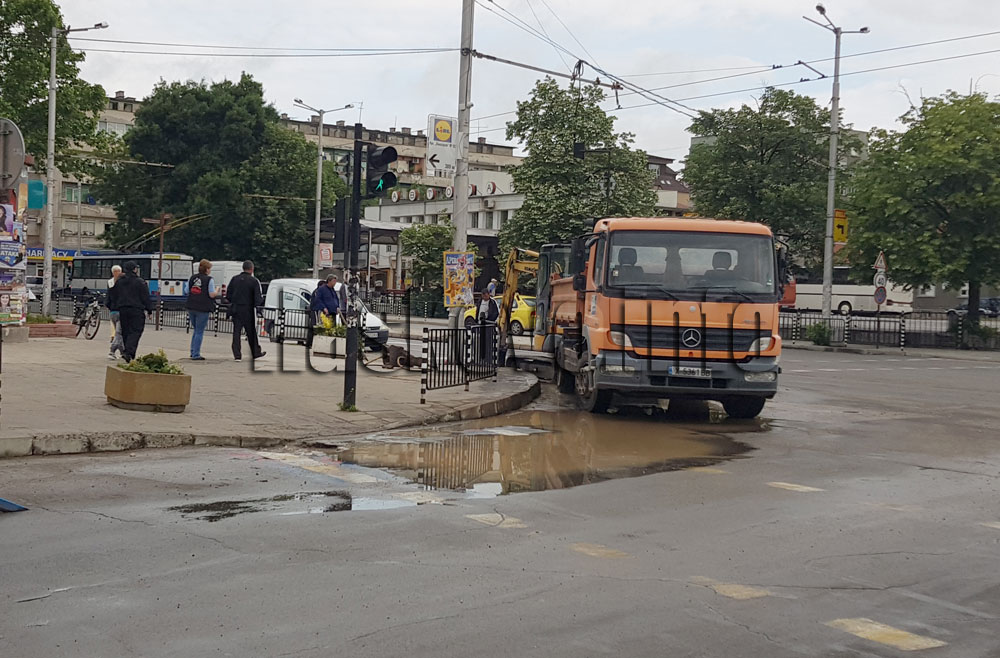 Поредна авария стана на водопровода на кръстовището до автогарата в Хасково.