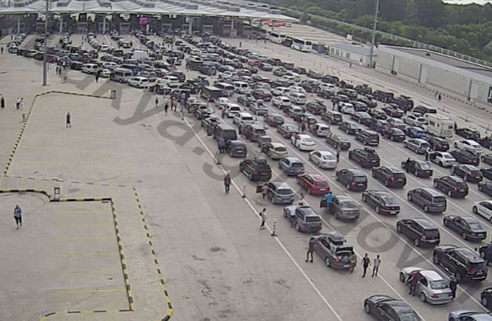 За интензивен трафик от леки коли на изход на българо-турската граница край Свиленград предупреждават от Гранична полиция. Пред всички гишета има дълги колони от чакащи да преминат автомобили.