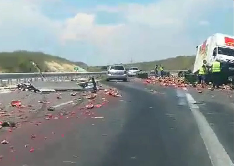 Издирват шофьора на Аудито, блъснал камиона с дини на магистрала „Марица“