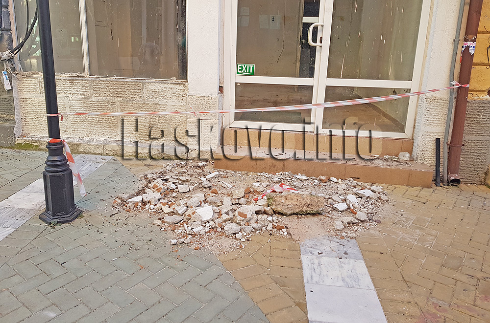 Големи парчета мазилка падат от няколко месеца от общинската сграда. В района има много търговски обекти и потокът от хора е голям. Хасковлии искат по-сериозни мерки за обезопасяване, защото под поставените ленти минават деца и е много опасно.