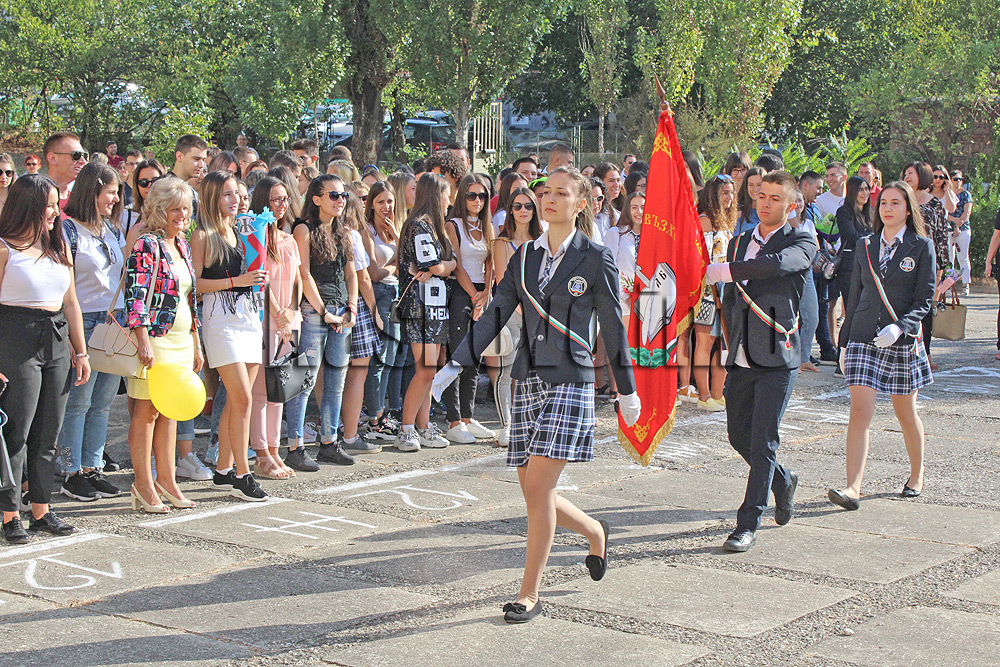 Мажоретният състав на училището откри тържеството. Директорът на гимназията Маргарита Топалова поздрави всички ученици, учители и родители като им пожела съзидателна и мъдра учебна година.