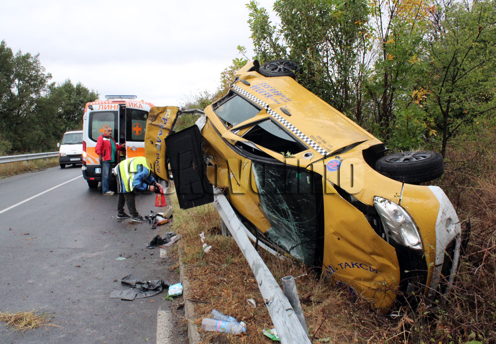 Такси се обърна върху мантинелата на пътя Хасково – Минерални бани