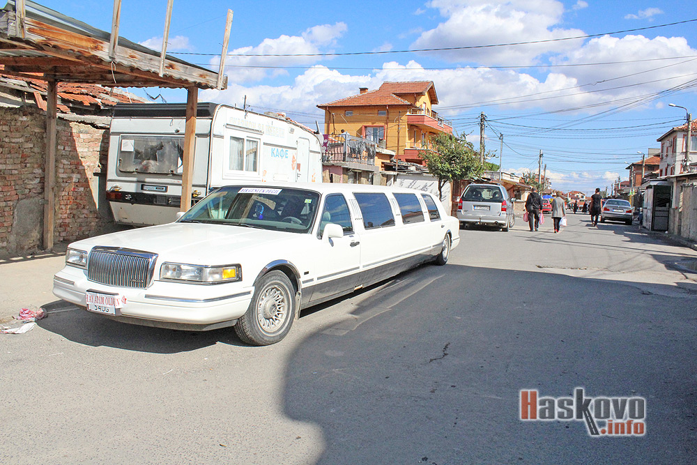 Бяла лимузина, използвана най-вероятно при сватби, е паркирана на една от главните улици в хасковския квартал „Република“.