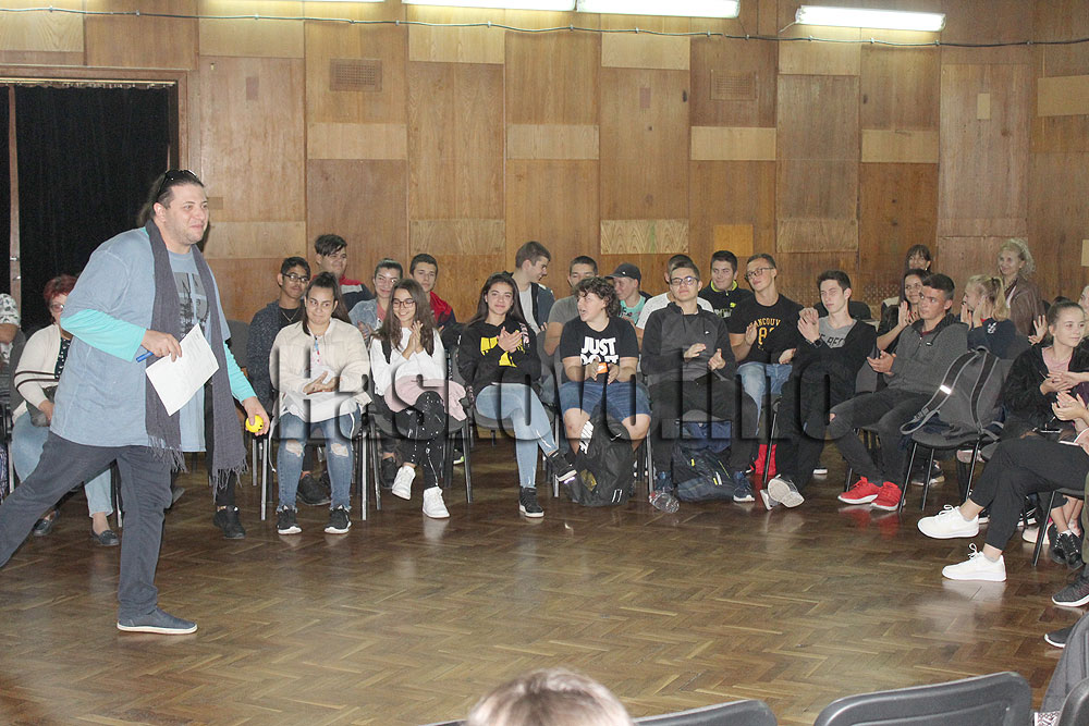 Гостуването на психолога в Младежкия център е по покана на Превантивно–информационния център по наркотични вещества в навечерието на Международния ден на психичното здраве – 10 октомври. Учениците от Езикова гимназия „Асен Златаров“, ПМГ „Боян Петканчин“ и ФСГ „Атанас Буров“ се представяха и отговаряха на въпроси, сред които бяха какво е за мен щастието, любовта и музиката.