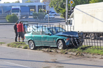 БМВ се заби в заграждения след удар от Фолксваген в Хасково