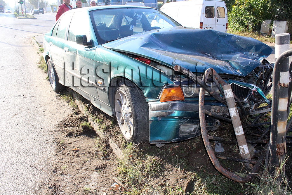 БМВ се заби в заграждения след удар от Фолксваген в Хасково
