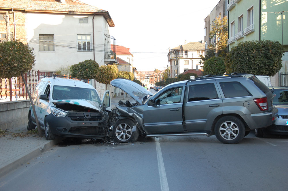 Джип „Гранд Чероки“ и лек автомобил Дачия са се сблъскали челно на оживена улица в Свиленград.