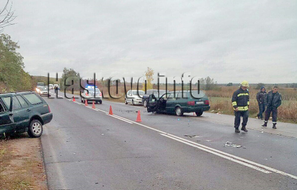 Инцидентът стана преди обяд между селата Бял извор и Тракия. Ударили са се четири автомобила. Два от тях са се блъснали на мокрия път и са последвали удари с останалите два. На място са екипи на пожарната и полицията.