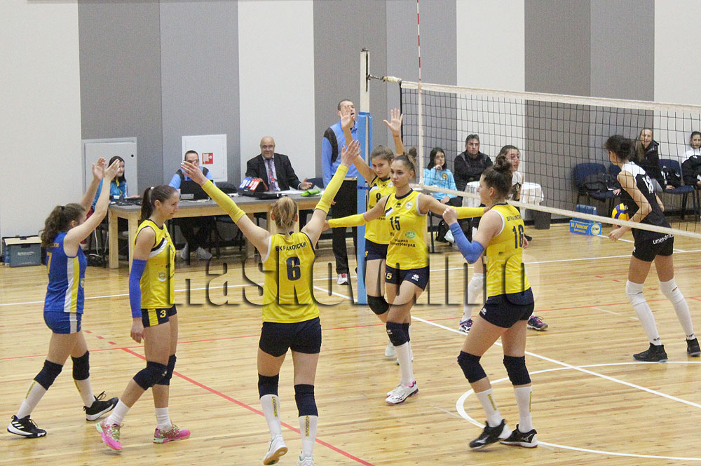 Волейболистките на „Раковски“ (Димитровград) записаха първа победа като домакини в женското първенство над „Славия“ (София) с 3:0 (25:22, 25:21, 25:21).