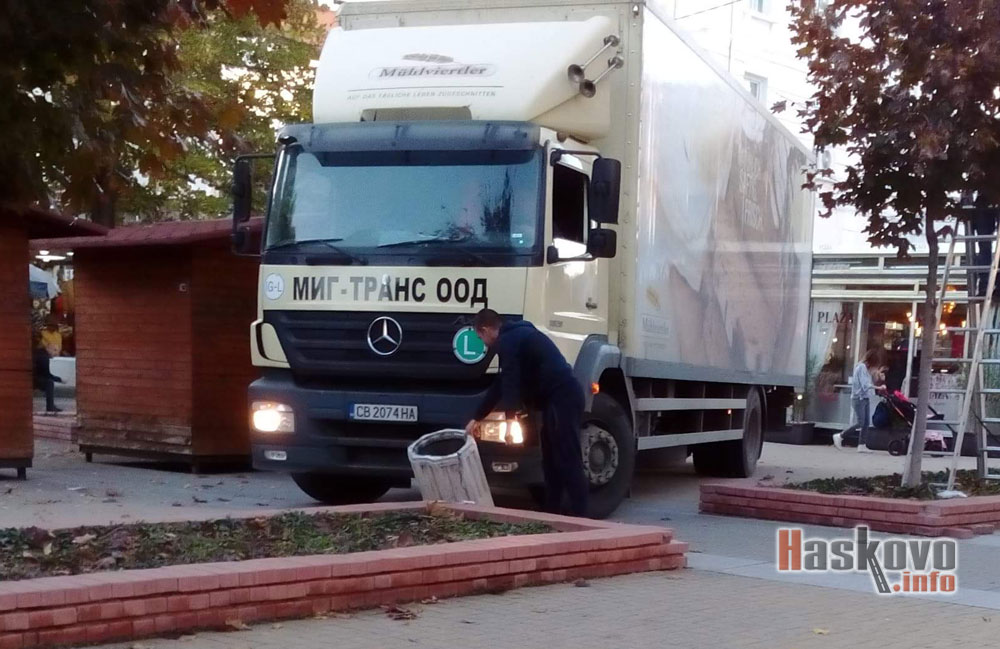 За камион, който е счупил едно от кошчетата в центъра на Хасково, сигнализираха със снимка читатели на Haskovo.info.