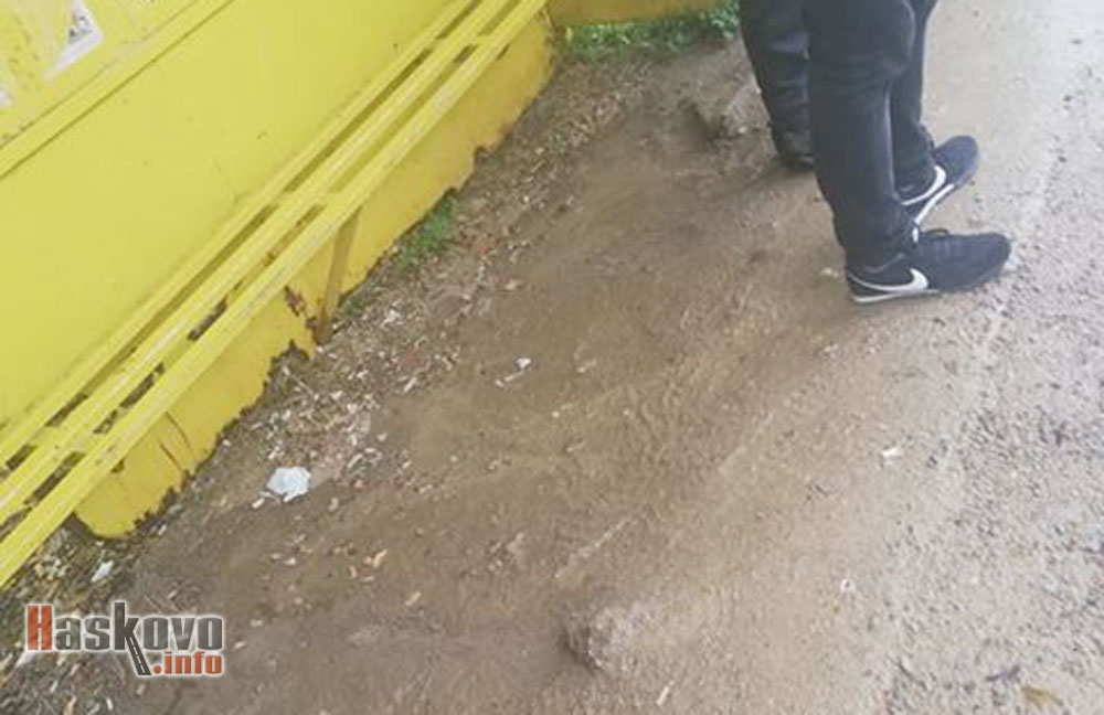 Деца чакат в кал автобуса на спирката до ФСГ „Атанас Буров“ в Хасково, сигнализираха със снимки читатели на Haskovo.info.