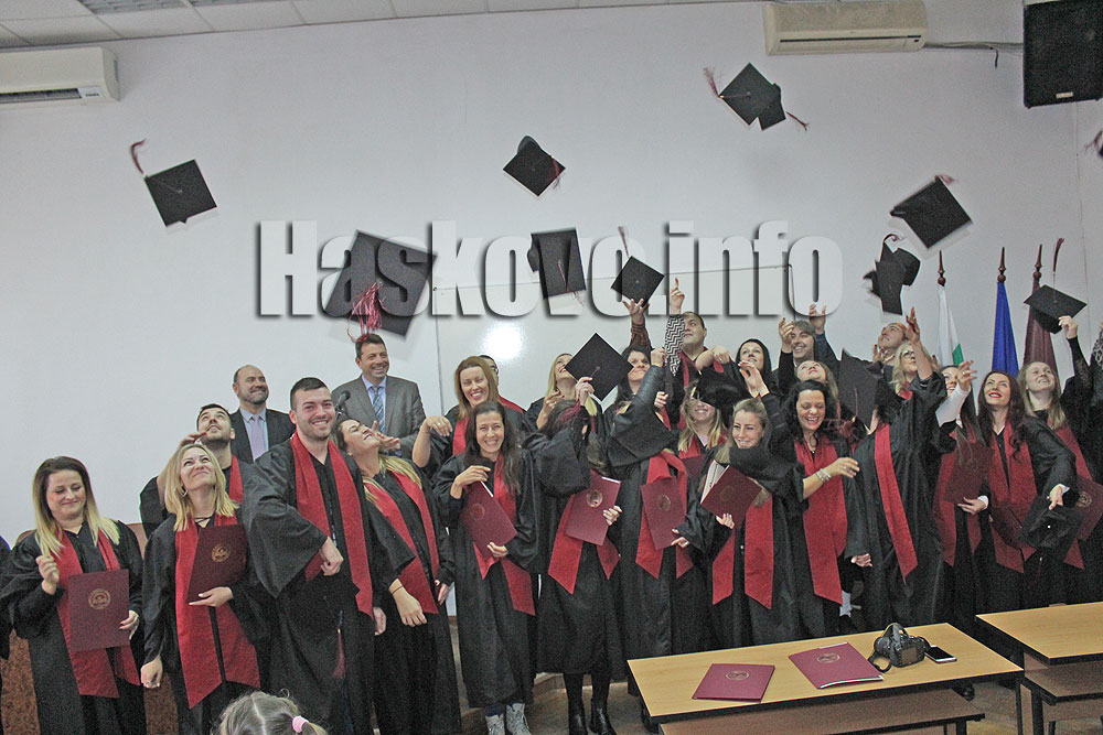 191 бакалаври и магистри получиха тържествено дипломите си в Регионалния център за дистанционно обучение на УНСС в Хасково.
