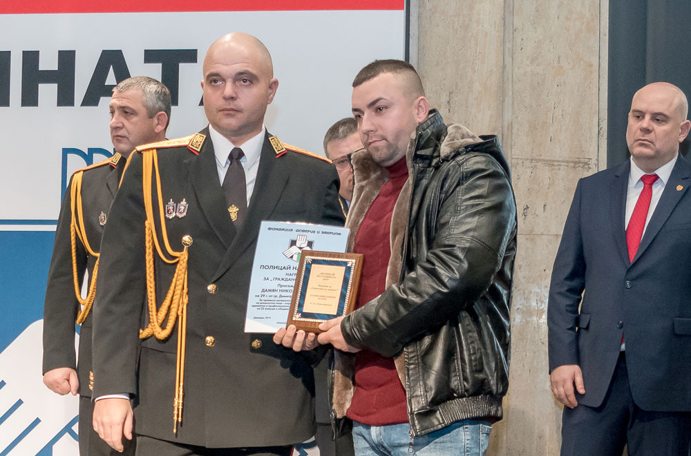 29-годишният Дамян Колев от Димитровград беше награден на церемонията „Полицай на годината“ за Граждански принос.