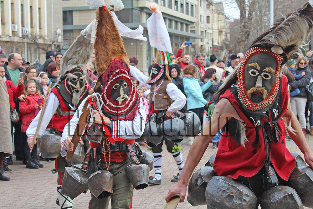 Страшни кукери и коледари прогониха злото от центъра на Хасково