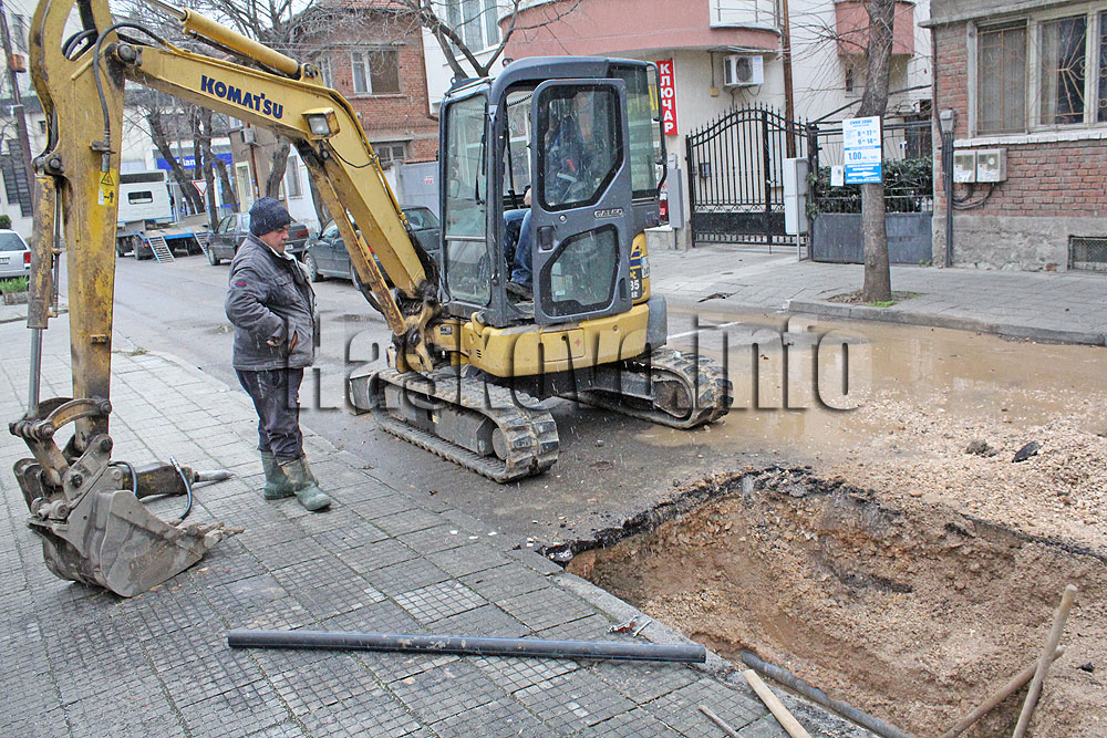 Проблемът е на улица „Цар Калоян“ зад сградата на полицията. Аварийният екип е разкопал улицата, която е затворена за движение.