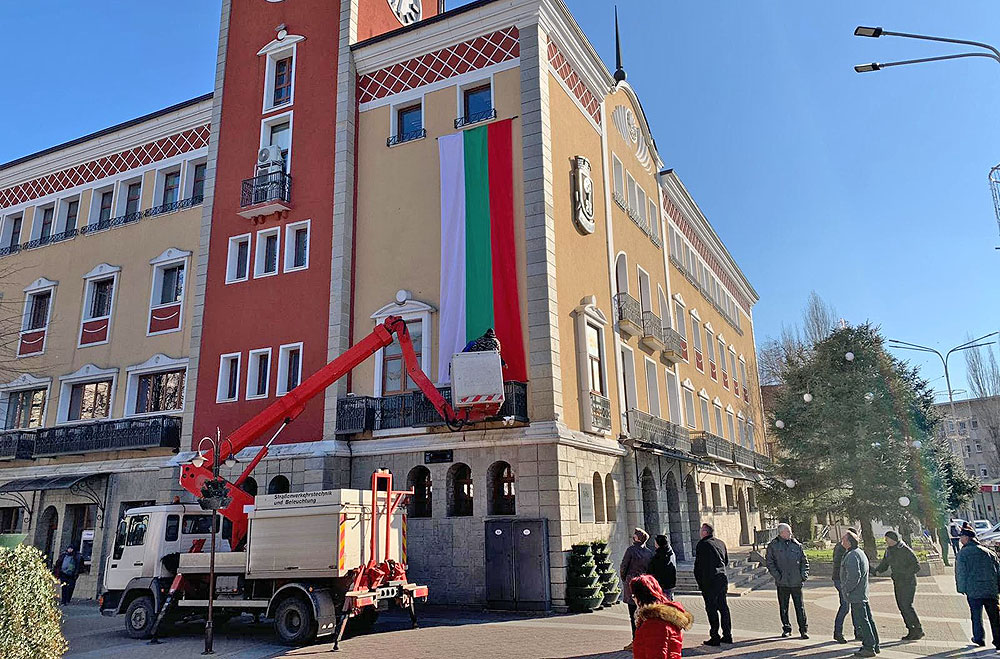 Поставиха ново национално знаме на фасадата на община Хасково с размери 7.30 на 2.5 метра. Haskovo.info припомня, че старото беше скъсано от вятъра в неделя.