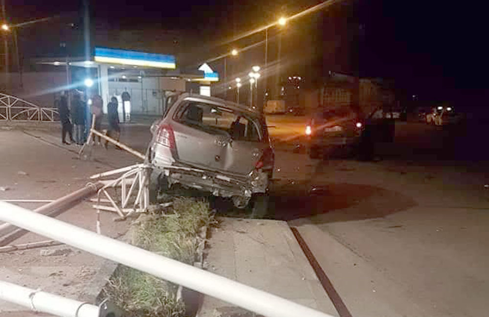 Младежът се е движил с несъобразена скорост. На десен завой е загубил контрол, ударил е паркирана Тойота и е повалил декоративна метална ограда в района на бензиностанция.