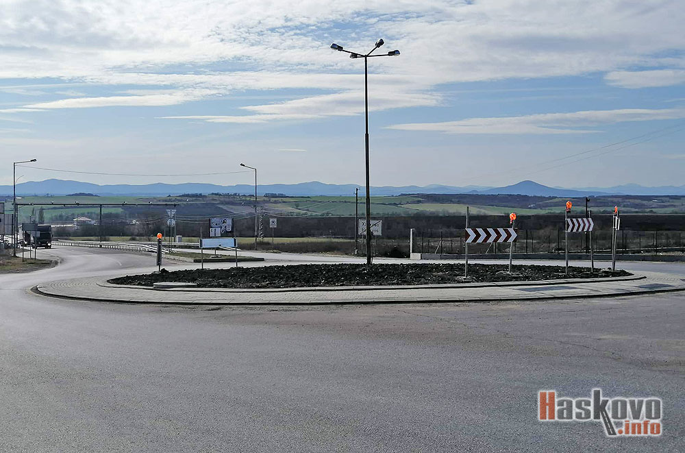 Приключи ремонтът на кръговото на изхода на Хасково за Кърджали. Нивото му е свалено като са поставени легнали бордюри и ивица от павета.