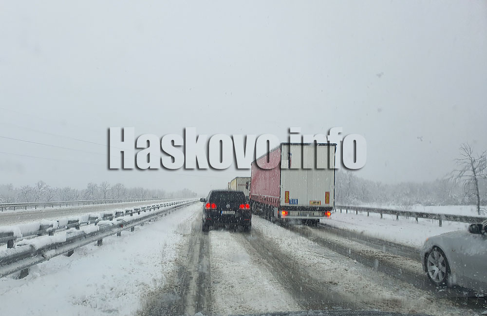 Отвориха магистралата, паркирани коли пречат на снегорините в Хасково – ВИДЕО
