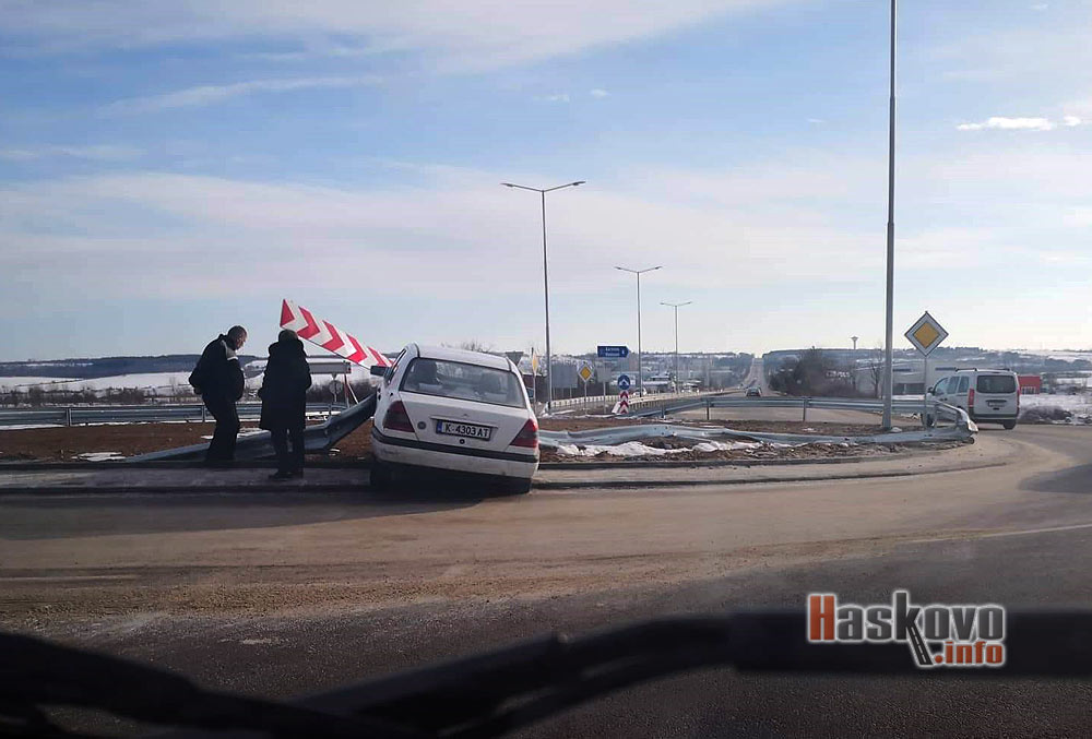 Пореден инцидент на кръговото кръстовище на пътя Хасково – Димитровград в района на „Язаки“ стана в съботния следобед, сигнализираха със снимка читатели на Haskovo.info.