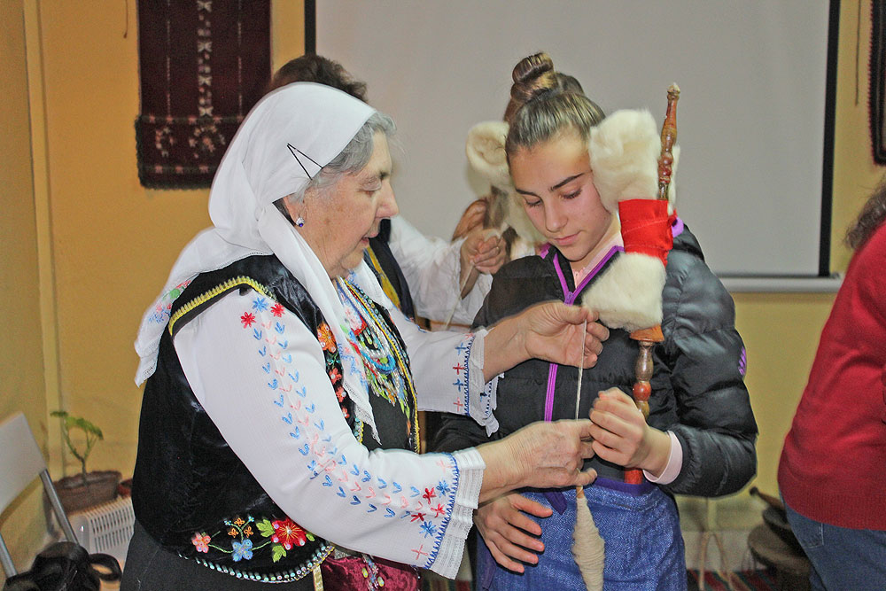 Под наслова „С хурка и вретено“ те научиха от Мария Маврева, Васила Сербезова и Мария Абаджиева какъв път са изминавали в миналото вълната и памука, за да се превърнат в дрехи и чорапи, черги и завивки. С помощта на хурка и вретено всяка жена умеела чевръсто да изпреде тънка нишка от вълнената къделя.