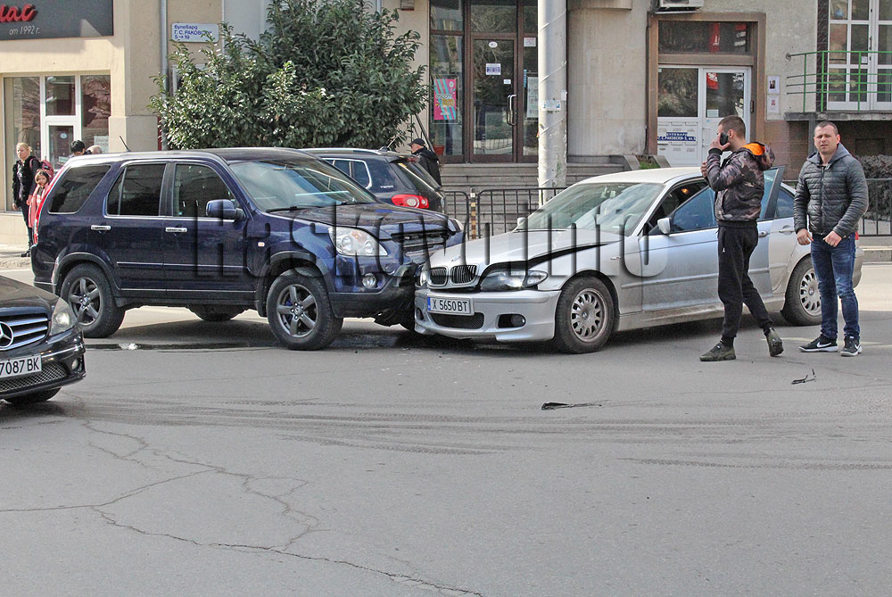 Джип Хонда и БМВ катастрофираха на кръстовището между булевардите „Раковски“ и „Съединение“ в Хасково.