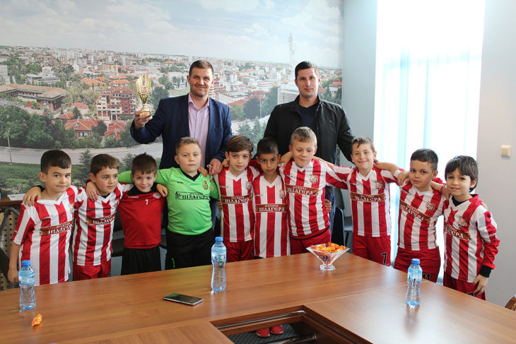 Малките футболисти на ФК „Хасково“ подариха на кмета Станислав Дечев шампионската купа от турнира в Оризари за деца, родени през 2011 и 2012 г., съобщават от общината.