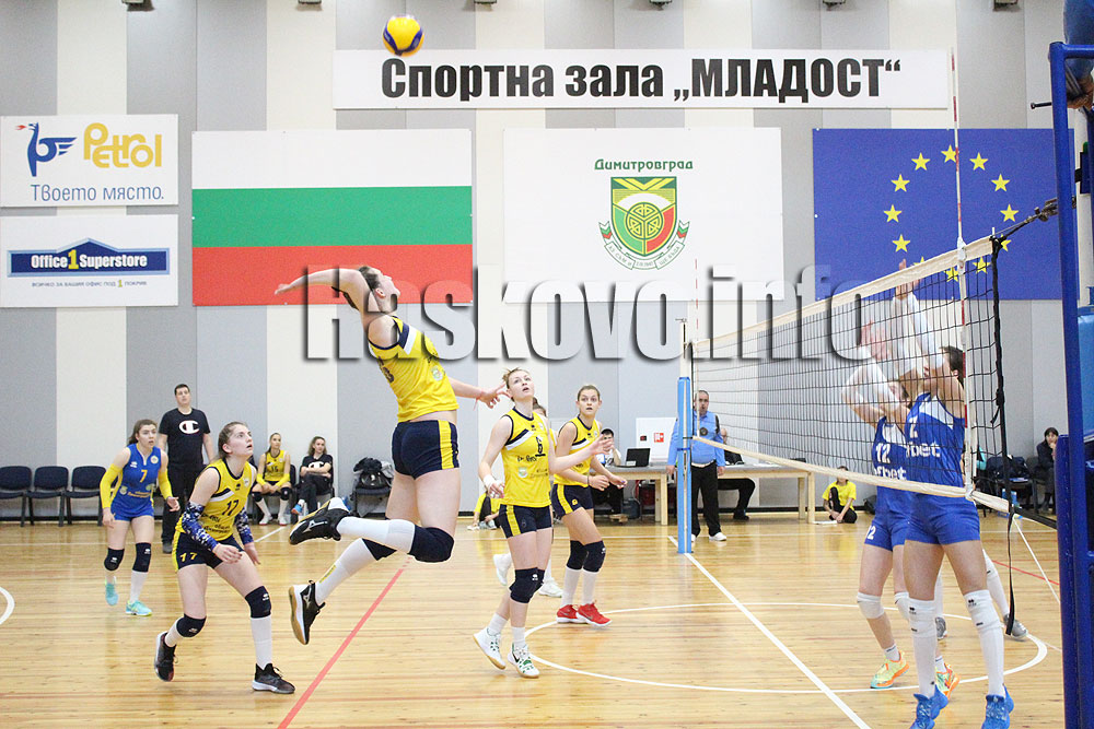 В първия кръг в димитровградската спортна зала „Младост“ момичетата на Диян Боюклиев отстъпиха на „Левски“ (София) с 0:3 (17:25, 16:25, 18:25). Имаше моменти, в които домакините бяха равностойни на вицешампионките. Срещата изгледа и кметът Иво Димов със своя екип.