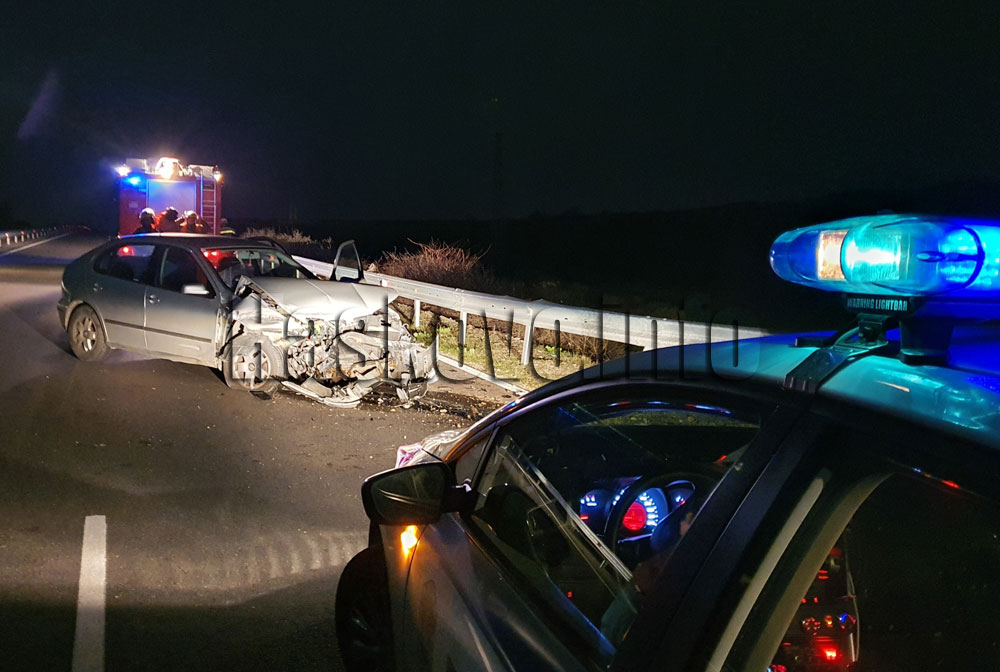 Преди удара колата е блъснала излязло на платното диво животно. След това се е завъртяла и е последвал удар в предпазното съоръжение. Той е бил доста силен, а предницата на автомобила е разбита.