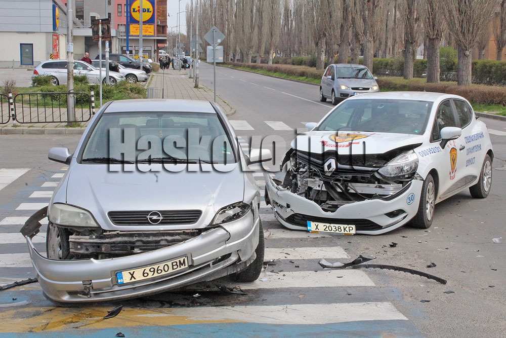 Лек автомобил Рено на СОД и Опел катастрофираха до площад „Лебеда“ в Хасково.