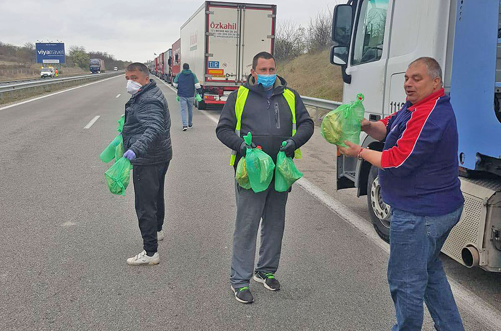 Храна, вода, маски и ръкавици раздават на шофьорите от опашката на границата