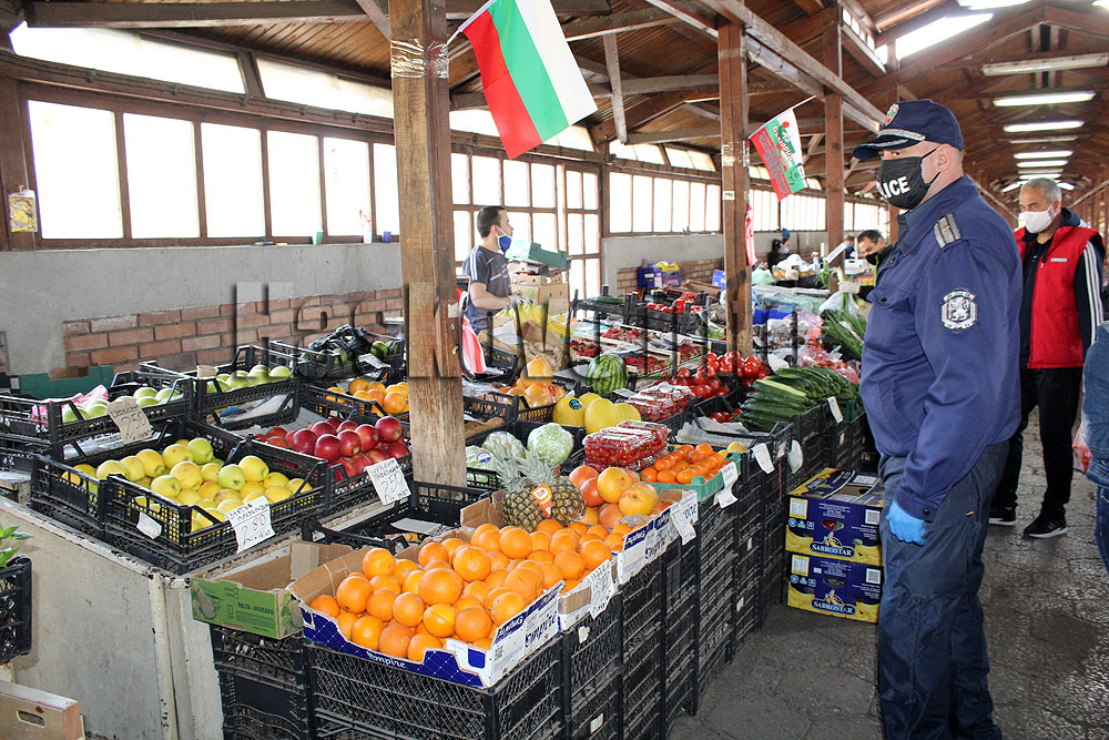 Полицаите и Георгиев дадоха указания на всеки един търговец на пазара, след което те свалиха цитрусите от сергиите. На пазара има указания хората да са на дистанция един от друг, да не се струпват, повечето са със задължителните от днес предпазни маски.