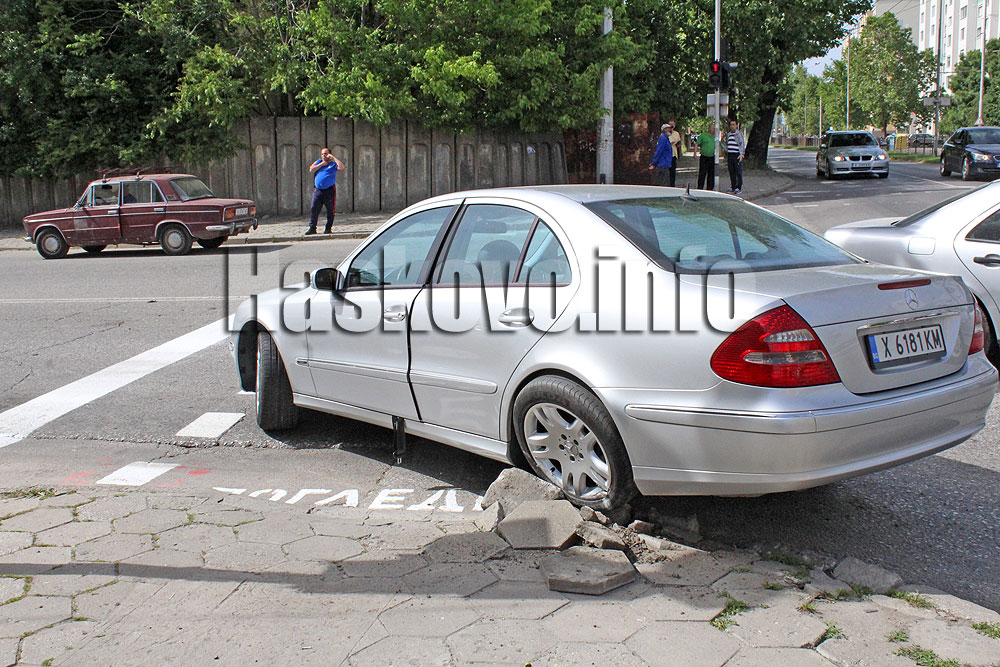 Мерцедес се завъртя и се удари в бордюри при произшествие в Хасково