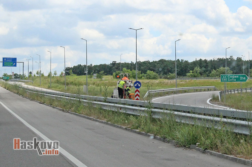 Робтници освежиха днес пътната маркировка на пътен възел "Димитровград".