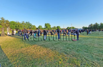 това е поредната демонстрация и провокация от тези уж миролюбиви хора, защо? първо, кой им позволи да отидат на това игрище, това че е обществено място е едно, съвсем друго е да се молят и да внушават че това място и не само е тяхно, утре могат и да си построят джамия, само защото ние българите сме толерантни, второ, както се вижда от снимките те са на същото разстояние каквото е и в джамията, така че това си е демонстрация, вижте колко сме вярващи, а нагъват свинско и пият ракия и жените им умират за необрязани …, затова следващия празник си го празнувайте в джамията!