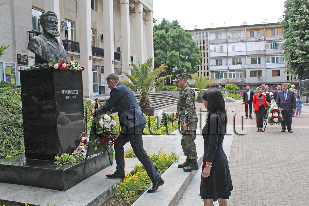Венци и цветя поднесоха кметът Станислав Дечев със своите заместници, народните представители Евгения Ангелова и Митко Полихронов, зам.-областният управител Митко Петров, председателят на общинския съвет Таня Захариева със своите заместници, заместник-командирът на 31 Механизиран батальон майор Атанас Бакалов и граждани.