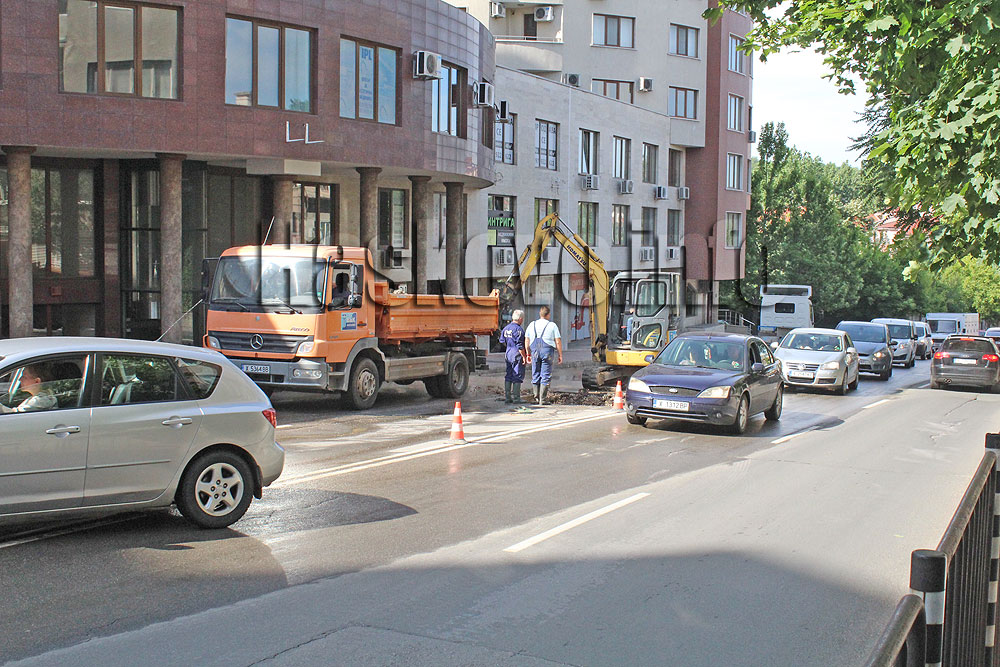 Аварийният екип разкопа булеварда за отстраняването на проблема. Едното платно е затворено за движение, което доведе до образуването на задръствания в района.
