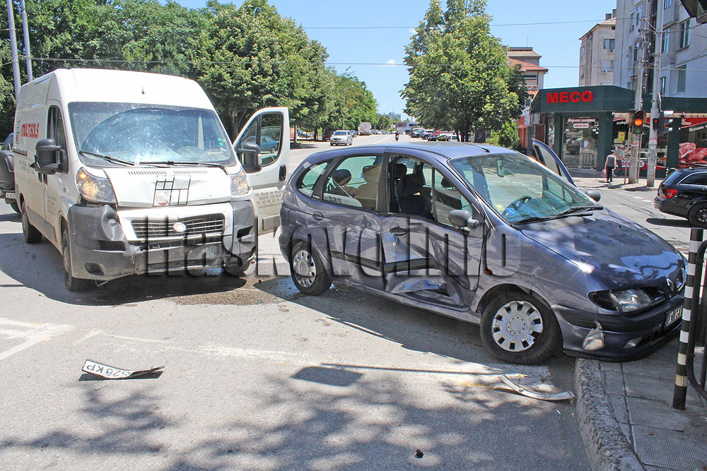 Микробус Фиат и лек автомобил Рено катастрофираха на кръстовището между улица „Дунав“ и булевард „Раковски“ в Хасково.