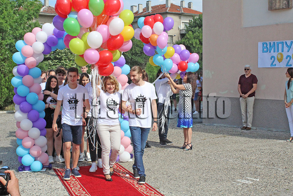 Те преминаха по червен килим, като част от зрелостниците бяха с бели тениски „Коронавипуск 2020“. Директорът Гергана Петрова ги похвали за високите им постижения, особено на държавния зрелостен изпит по Български език и литература, от който средният успех е 5.21 при 4.20 за страната. Средният успех от матурите е 5.11.