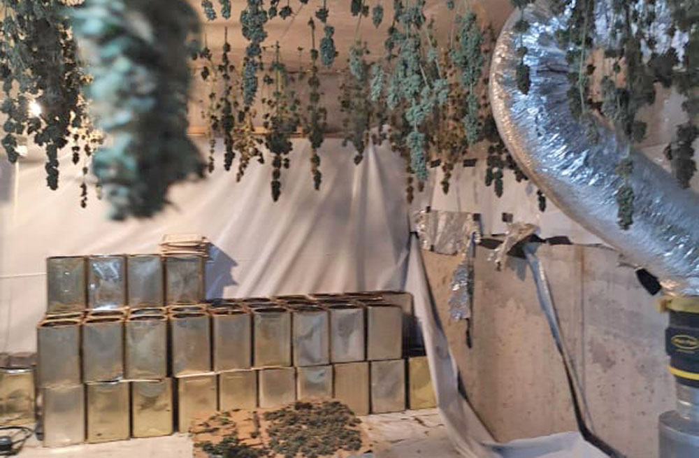 На тавана на помещението за сушене са били окачени множество растения канабис. Открита е и листна маса, оставена на пода също за сушене. Иззети са общо 11.323 кг. полусухи стебла, листа и съцветия, които предстои да бъдат дадени за изследване в лаборатория.