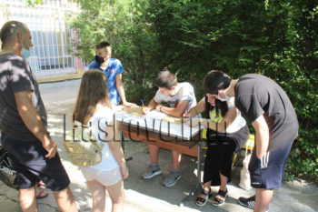 Подаването на заявленията става и на хартия, като за Хасково традиционно мястото е в Обединените ученически общежития. Това става при спазване на противоепидемични мерки. За да няма струпване на хора в залата, документите се попълват и отвън.