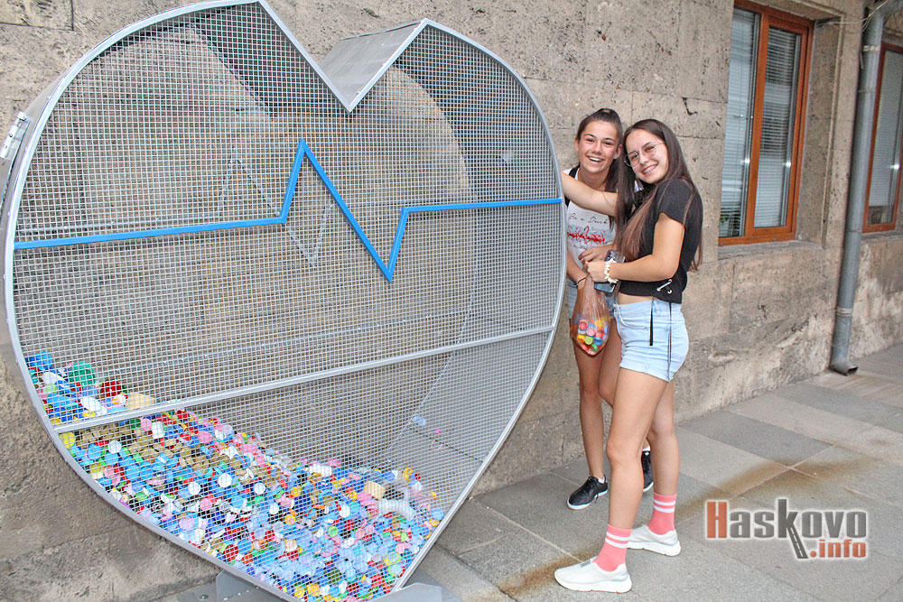 Хасковлии продължават благотворителната акция и пълнят с капачки голямото сърце пред сградата на областна администрация.