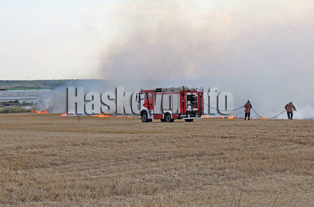 Привечер пламна ожъната нива и сухи треви край пътя Хасково – Димитровград зад борса „Марица“. На място пристигнаха няколко пожарни, които с помощта на работещите в съседните обекти успяха да спрат огъня.