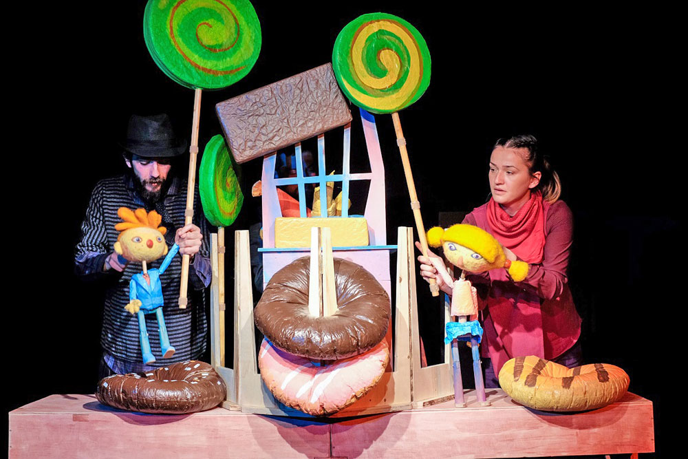 Петър Влайков, Стефани Раманска и Димитър Димитров са актьорите, които разказват приказката на Братя Грим. Драматизацията и режисурата са на Ева Кьосовска, а сценографията на Крум Крумов. Музиката към „Хензел и Гретел“ написа Георги Георгиев – „Остава“.