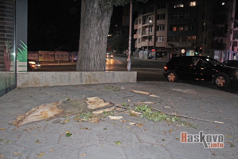 Парче от клон на топола е паднало на тротоара до зеленчуковия пазар в Хасково.