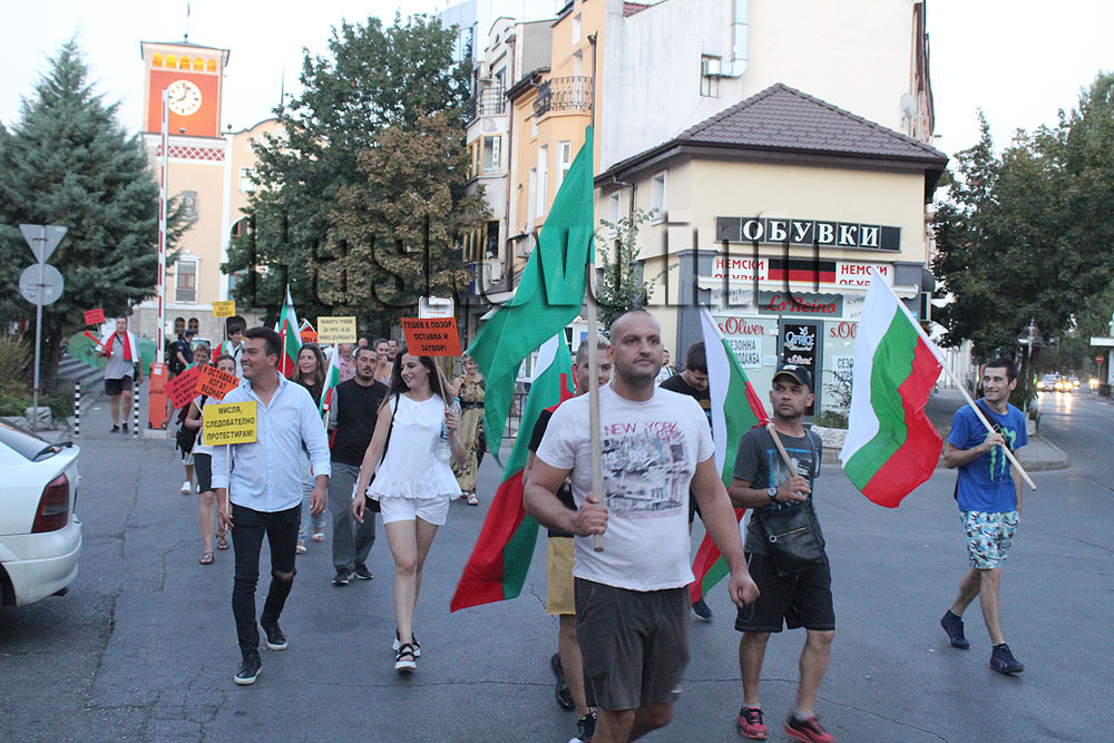 Последва шествие с викове за оставки на правителството и главния прокурор. Протестиращите преминаха покрай общината, съда, зеленчуковия пазар.